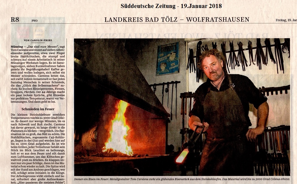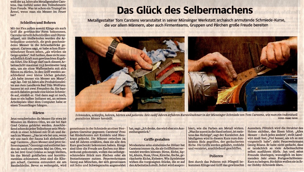 die Süddeutsche Zeitung berichtet über die Messerschmiedekurse von Tom Carstens in Degerndorf bei Münsing am Starnberger See.